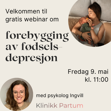 Psykolog Ingvill Øvsthus, grunnlegger av Klinikk Partum, holder et gratis webinar om fødselsdepresjon 29. august. Meld deg på nå og sikre deg en plass!